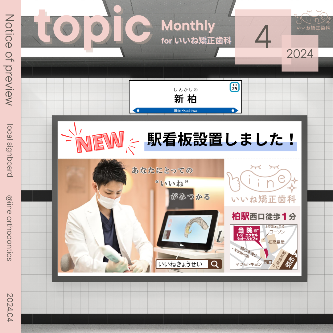 新柏駅 看板設置 2024年4月25日 Topic 駅看板を設置しました! 場所は新柏駅です! 通勤・通学途中や休日に ふと目に入るかもしれません 🤭 この看板を見た時にクスッと笑えて たくさんのいいね👍が 溢れる日常になると嬉しいです! ご来院お待ちしております!